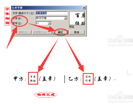 2、然后调整合并字符的字体及字号并按“确定”按钮即可,如图: