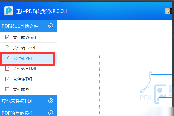 2、下载和安装完成后,打开软件主页并单击PDF将文件转换为其他文件列下方的PPT按钮。