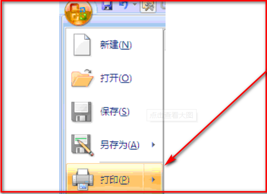 3、单击左上角的“office”按钮,在弹出的菜单中点击“打印”。