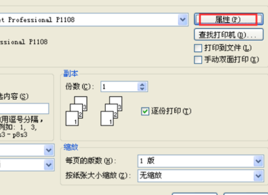 4、在弹出的打印对话框中,单击属性按钮。