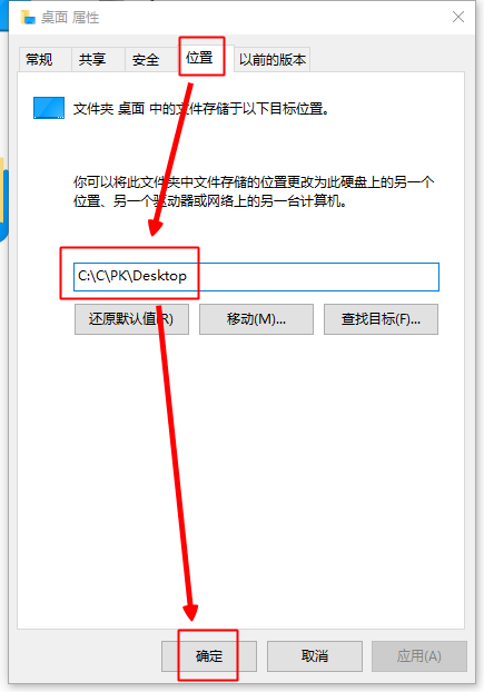 点击右键菜单中的“属性”,弹出下图窗口,点击“位置”选项卡,这页中把位置改到D盘或E盘,重启电脑,完毕。这样修改后,你就应该有权限将文件存到桌面了。