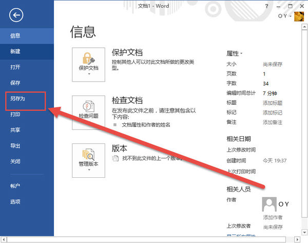 2.在功能页面中找到另存为选项,点击另存为选项进入另存为页面当中。