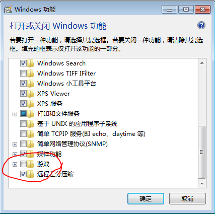 5、在弹出的“windows功能”窗口中,下拉滚动条,找到“游戏”: