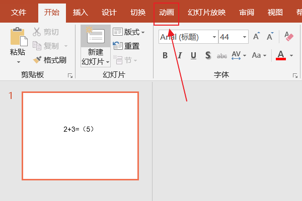 3、在上方的工具栏里面找到动画并点击: