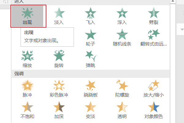 5、选择动画效果出现:
