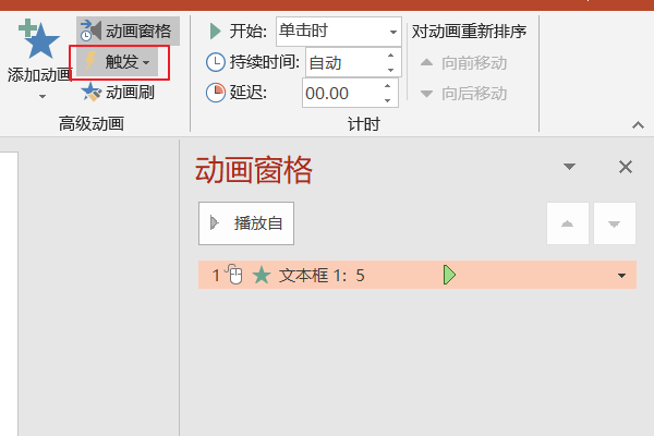 6、点击动画窗格下的触发: