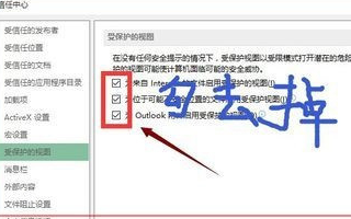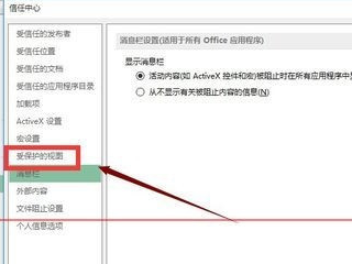 6、在信任中心设置边栏以选择受保护的视图