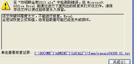 Excel 文件不能读取 自动修复说 破坏太大 无法修复