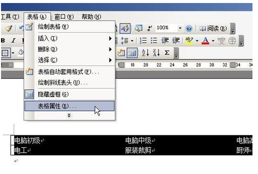4.选定表格,执行“表格/表格属性”命令。如下图所示: