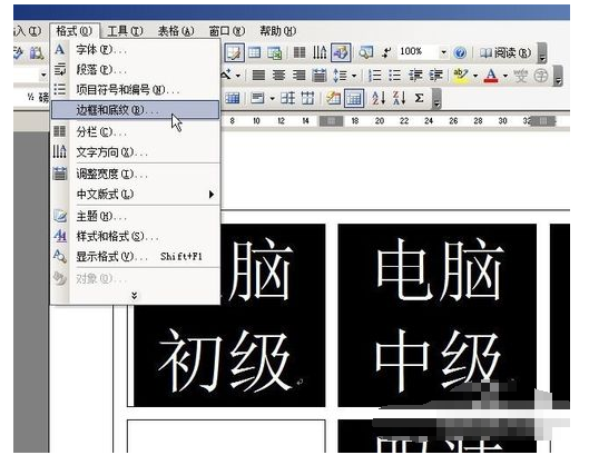 8.选点表格,执行“格式/边框与底纹”命令。如下图所示: