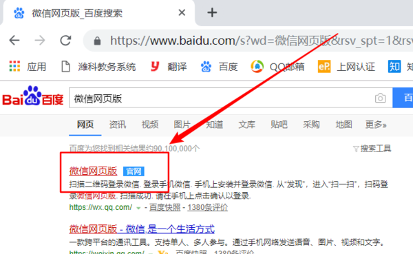 1、首先打开浏览器,在搜索框中输入微信网页版,点击搜索,点击进入。