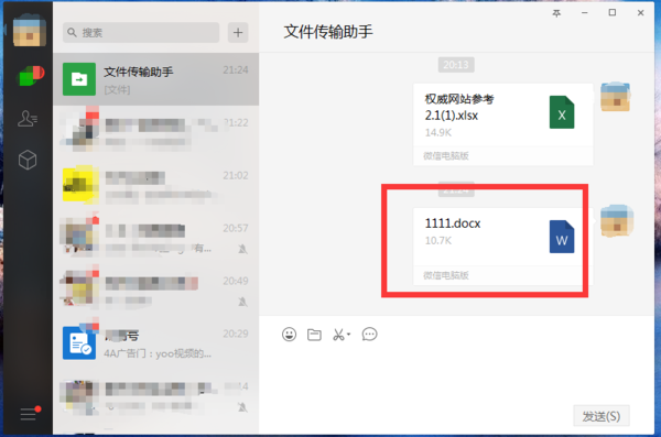 4、最后打开手机微信,就能看到发送到微信的文件。