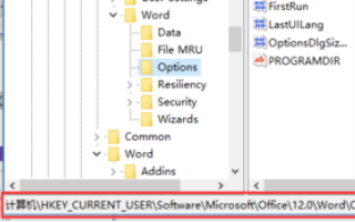 2、从打开的注册表界面中,依次展开“HKEY_CURRENT_USER\Software\Microsoft\Office\Word版本号(如15.0/19.0等)\Word\Options”选项卡界面