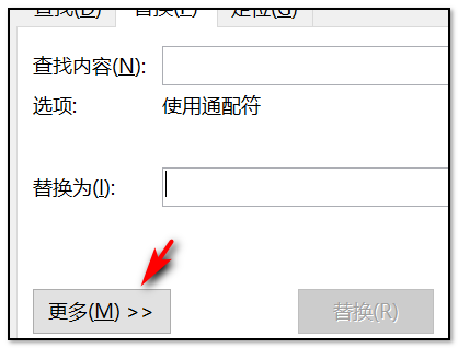 高级或更多选择“使用通配符”,点击全部替换若干次,直到提示替换了0处为止。