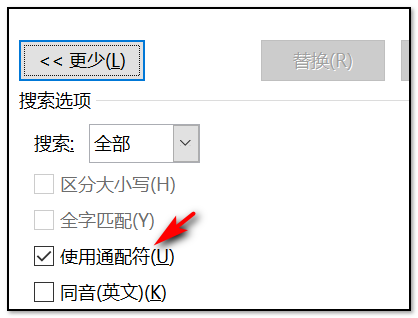 “搜索选项”下方勾选“使用通配符”;
