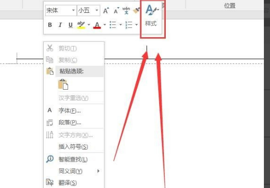 6、用鼠标在横线处点击右键,就会出现这样一个菜单,选择其中的“样式”。