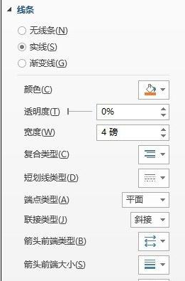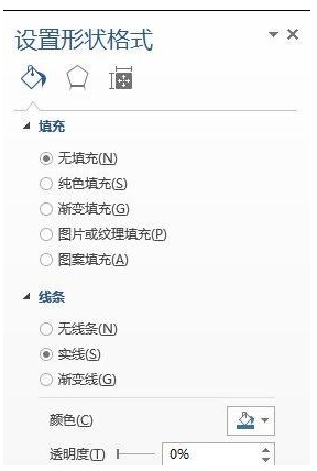 随后界面右侧会出现“设置形状格式面板”,设置形状的填充颜色和线条粗细。