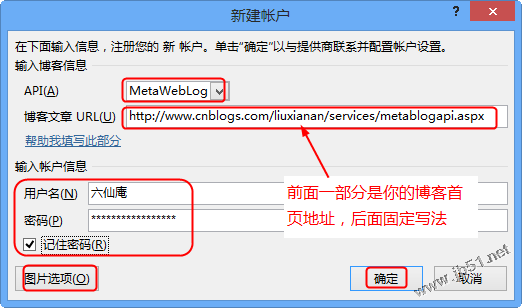 博客文章地址为:http://www.cnblogs.com/你的博客名称/services/metablogapi.aspx