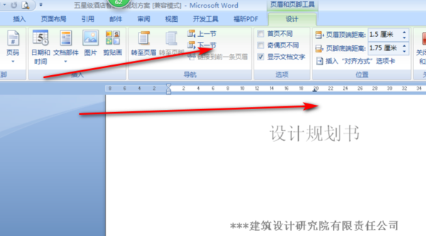 双击打开需要设置的页眉,会自动展示出“设计”工具栏。勾选上“首页不同”。