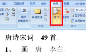 2. 在工具栏里找到”修订”, 点击.