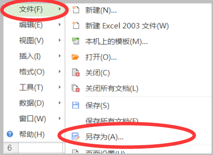 4、再将表格文件进行转换操作,点击“文件”中的“另存为”。