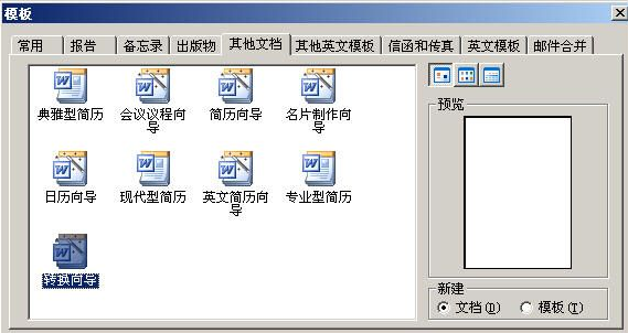 单击【文件】/【新建】命令-----打开【新建文档】任务窗格-----单击【本机上的模板】命令-----弹出【模板】对话框-----单击【其他文档】选项卡------【双击转换向导】图标,如下图所示。