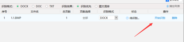 3、点击操作下面的开始识别按钮,开始进行转换。