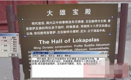 2、然后软件会自动识别选择区域中的文字,过1秒钟就将文字识别出来了,如上图记事本;