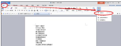 步骤一:在文字的开始部分,按住鼠标左键,一直往下拉,直至整篇文档被选中。