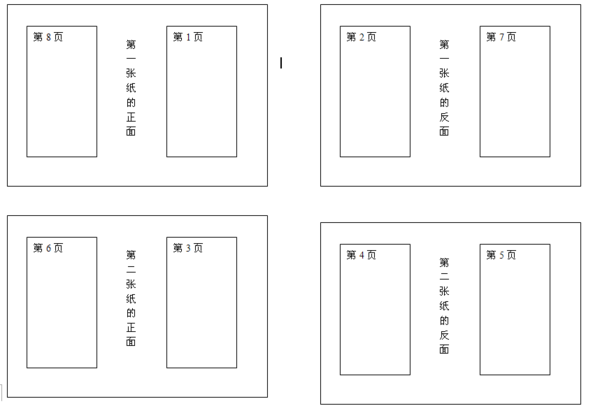 4、若文档显示8页,双面打印时,页面的分布情况如图所示;