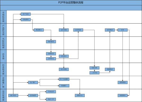 作为p2p平台运营必须要组建相应的职能部门开展相应的工作才能使平台正常运转: