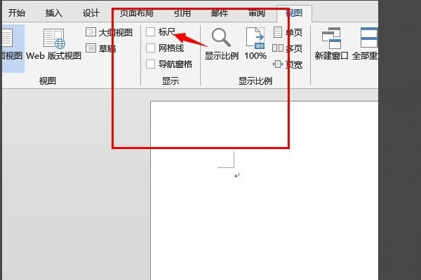 3、点击视图选项中的“标尺”功能选项,勾选前面的方框即可。