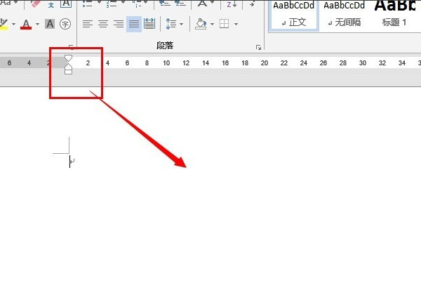 5、点击鼠标左键不动即可将标尺右侧位置拖动到合适的宽度,松开鼠标左键即可。