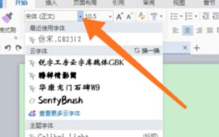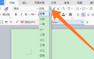 4、然后再选择字大小,点击选择字体大小栏向下箭头选择大小,显示的最大号为初号,你点击想设置的大小后字体大小就改变了。