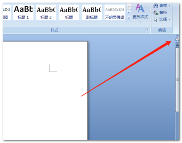 1、 打开Word文档,可以看到页面中没有标尺,我们点击右上角的图标。