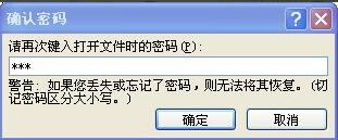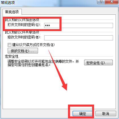 在“打开文件时的密码”处输入特定的密码,点击“确定”;