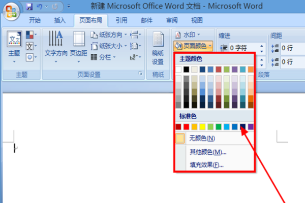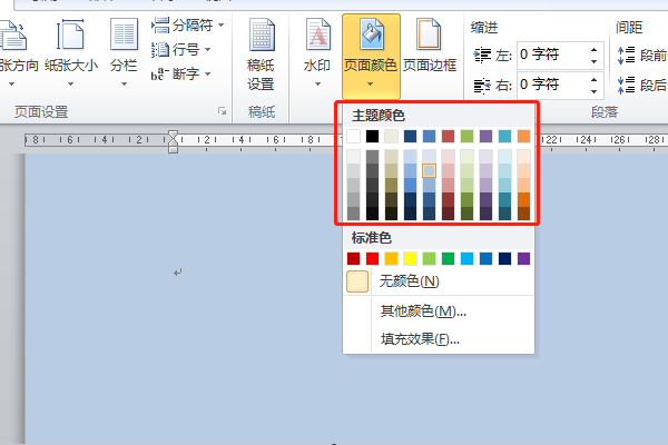 4、选择页面颜色功能选项下拉后。里面有我们可以看到有一些标准颜色来共我们选择。