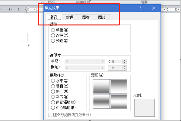6、也可进入下面的填充效果进行设置,设置各种你想要的效果,再点确定则可。