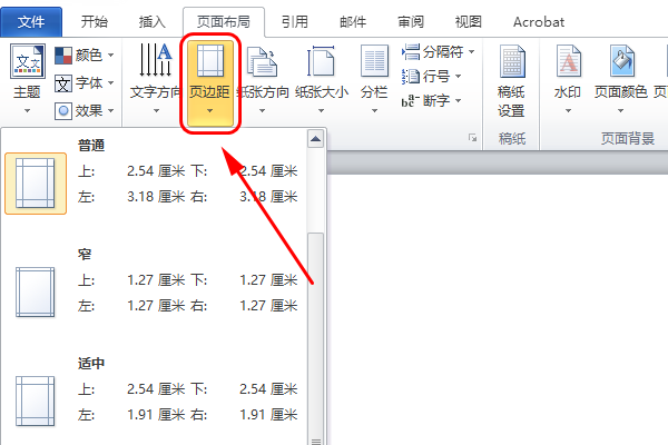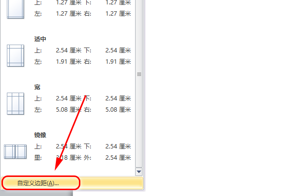 3、如果选项中没有适合的页边距,可以点击最下面的“自定义边距”;