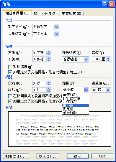 怎么让word文档里文字的行间距为18磅