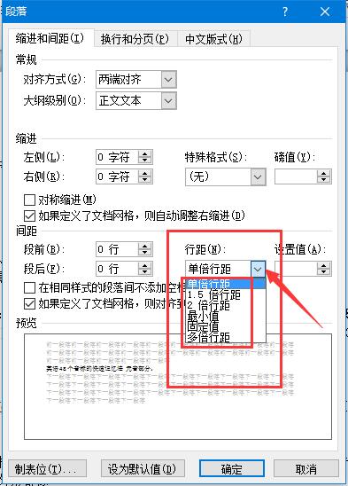 3、行距那里有1.5 2 最小 固定值 多倍 几个类型。可以根据需要选择。