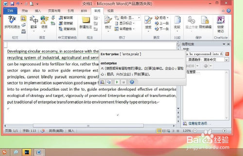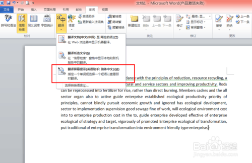 Word 2010有迷你翻译器,相当于屏幕取词功能。