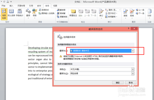 然后在最下面的是【选择转换语言】,在弹出的对话框中,可以设置它为将英文转成中文,也可以与其他国家的语言转换