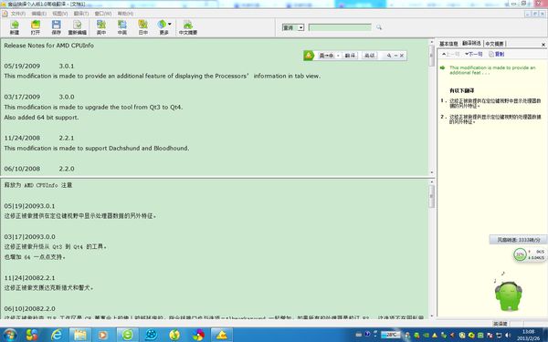四、启用该功能后就可以进行相关操作了,比如翻译一段文本进行翻译、复制翻译结果、朗读该段文本。鼠标停留在某单词上时迷你翻译器会提供双语字典,这就是所谓的“屏幕取词”功能。