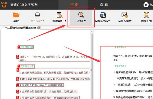 4、然后点击“识别”按钮,就可以看到识别后结果在原文件的右手边。