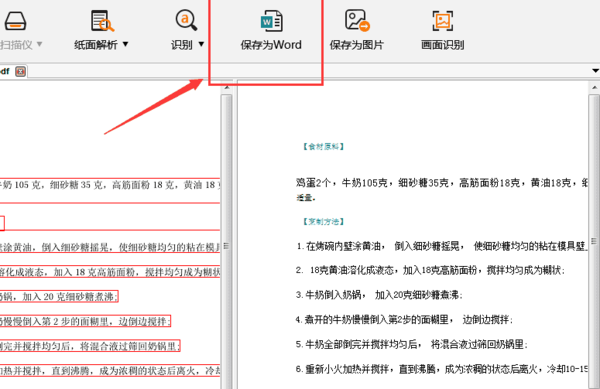 5、点击工具栏中的“保存为Word”,生成一个文本。这样一来,我们的识别就算完成了。