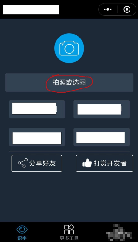 3、进入小程序以后,点击拍照或选图。