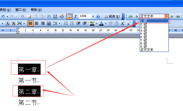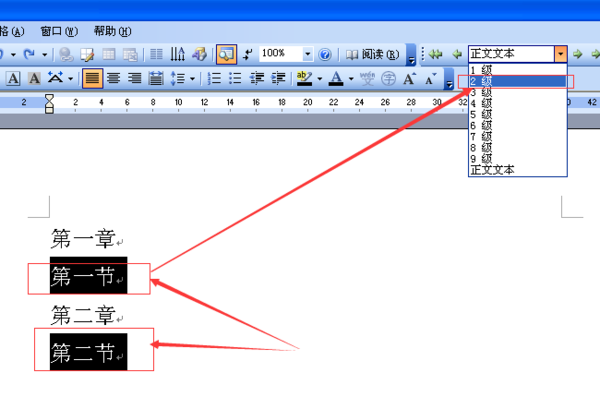 2、用同样的方法分别设置二级、三级等文字。