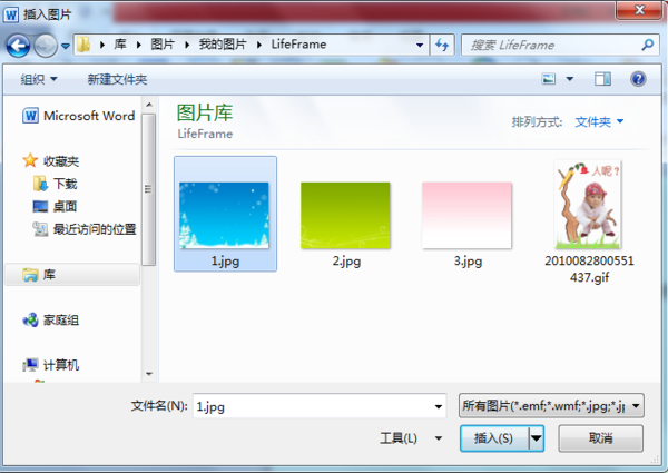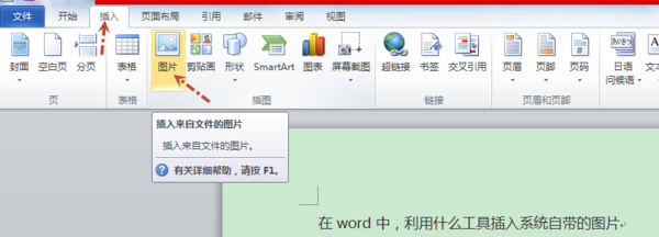 通过word菜单的【插入】--【图片】功能可以直接插入系统自带的图片。