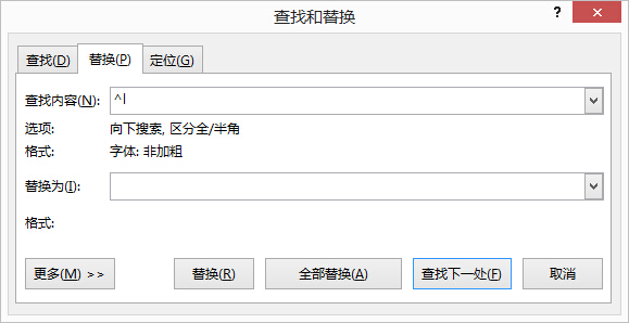 注:文中标红的通配符,意思就是查找所有以非句号、冒号、中文省略号、问号、感叹句和右括号为结尾、硬回车符号为标志的段落,然后将其删除。